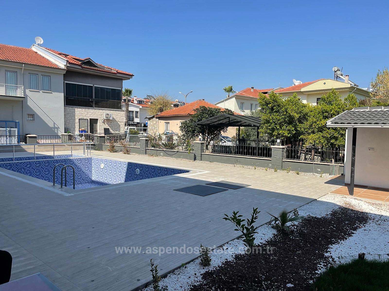 In einem Gebäude mit insgesamt 8 Wohneinheiten auf einem 1000 m² großen Grundstück im Zentrum von Dalyan steht eine Erdgeschosswohnung zum Verkauf. Die Wohnung verfügt über 2 Schlafzimmer, 1 Wohnzimmer mit offener Küche und 1 Badezimmer mit einer Wohnfläche von insgesamt 75 m². Sie ist komplett möbliert. Das Gebäude ist neu und renovierungsbedürftig. Zur Anlage gehört ein Gemeinschaftspool. Einkaufsmöglichkeiten und Supermärkte sind fußläufig erreichbar. Die Wohnung liegt 10 km vom Strand Iztuzu und 25 km vom Flughafen entfernt. Der Preis beträgt 210.000 Euro.