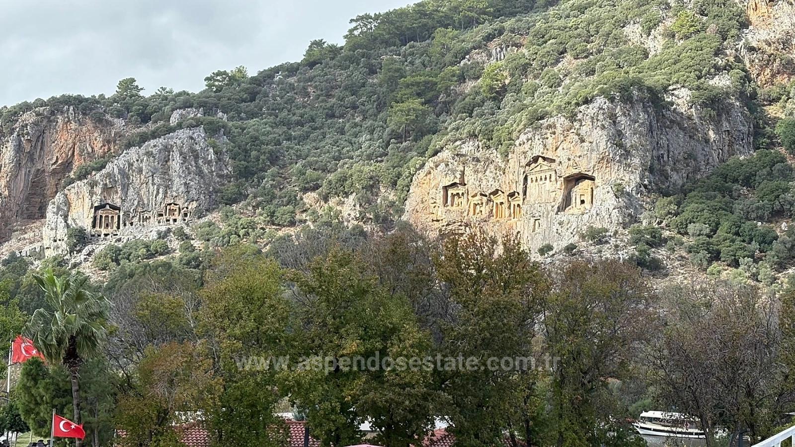 Der Pool hat eine Fläche von 50 m². Am Eingang befinden sich Rezeption und Wartebereich. Die großzügige Terrasse bietet einen herrlichen Blick auf die Kanäle und Felsengräber. Sie umfasst außerdem eine Küche und eine Bar und ist 400 m² groß. Die Terrasse eignet sich ideal als Restaurant. Einkaufsmöglichkeiten sind fußläufig erreichbar. Der Strand von Iztuzu ist 10 km und der Flughafen Dalaman 25 km entfernt. Preis des Boutique-Hotels: 85.000.000 TL (Das Hotel kann auf Anfrage komplett renoviert werden.)