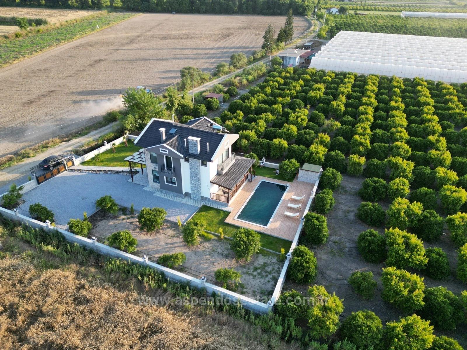 Auf dem gesamten Grundstück sind Orangenbäume angepflanzt. Ein tiefer artesischer Brunnen steht zur Bewässerung zur Verfügung. Die Villa liegt 4 km vom Zentrum von Dalyan, 15 km vom Strand von Iztuzu, 2 km von Einkaufsmöglichkeiten und 25 km vom Flughafen Dalaman entfernt und bietet einen herrlichen Blick auf Natur und Wald. Preis: 39.000.000 TL