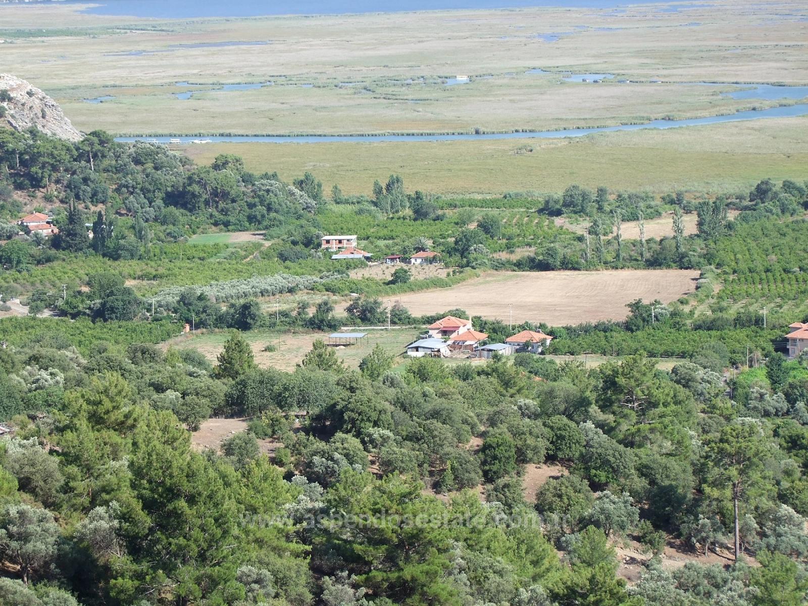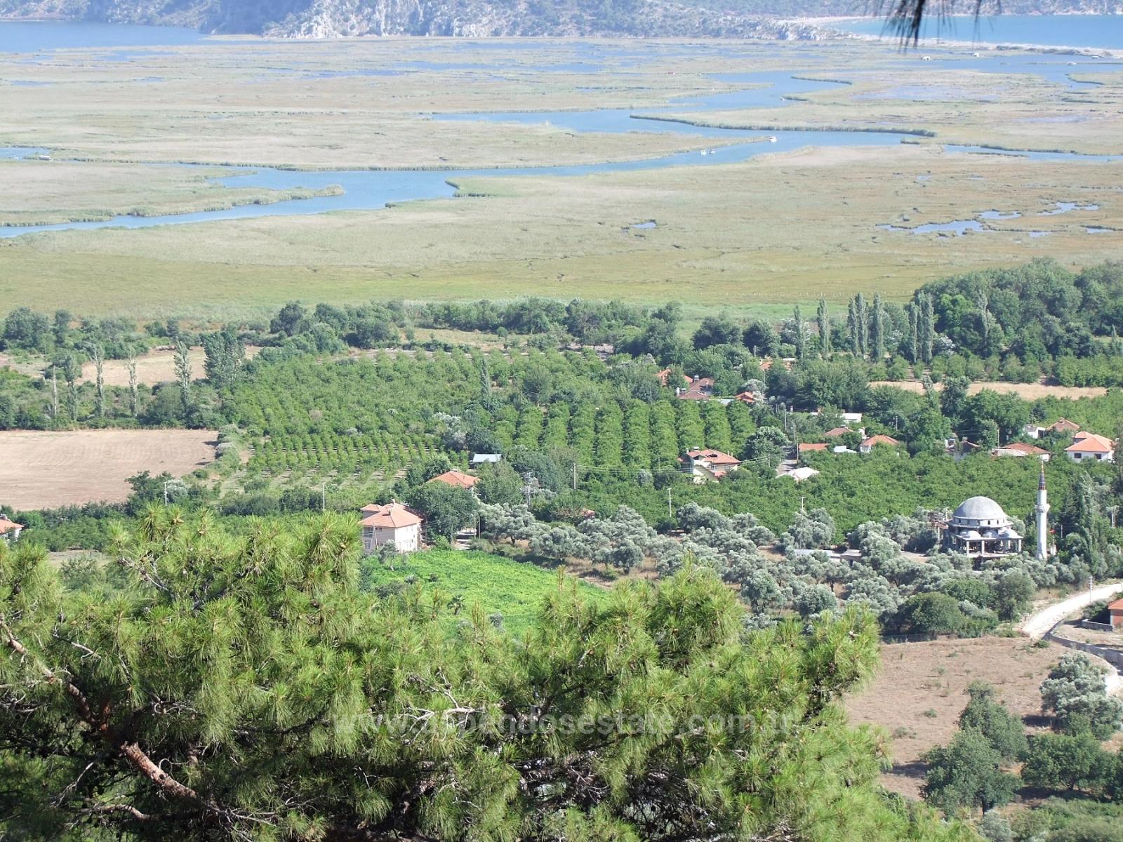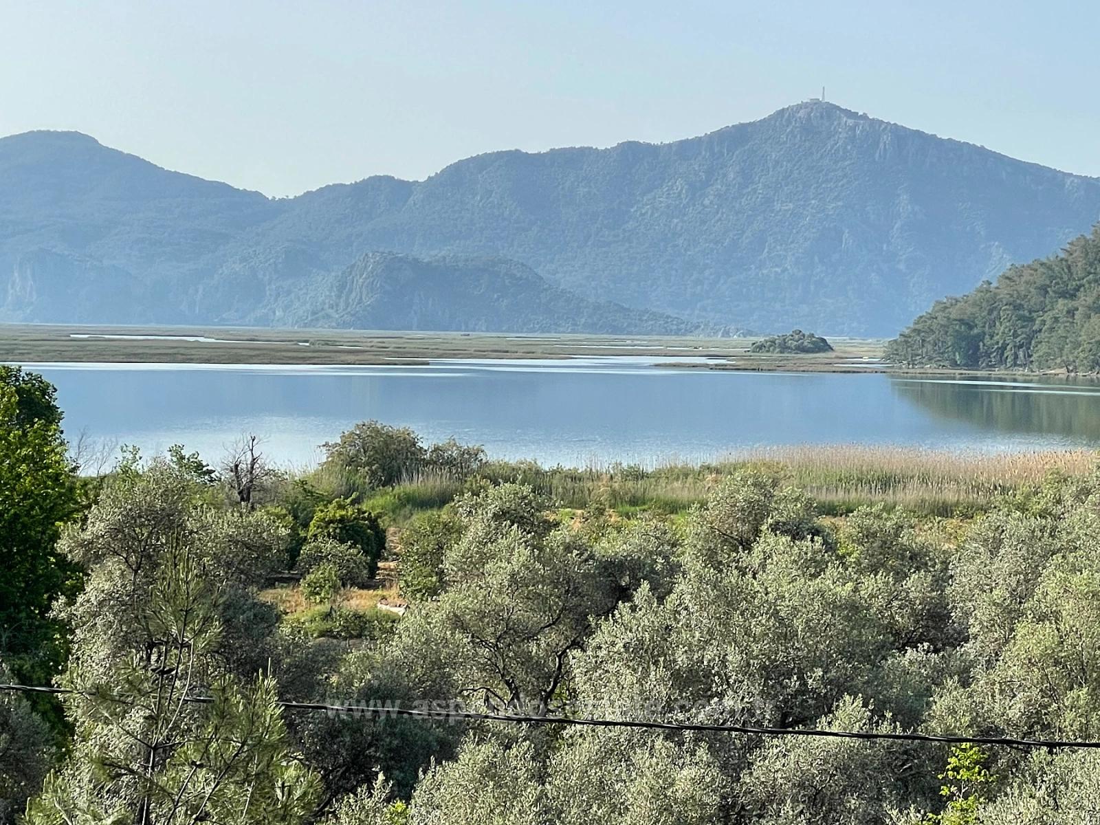 A 1252 m2 share of a 26300 m2 plot of land within the village settlement area in Çandır neighborhood of Köyceğiz is for sale. The sale is subject to a voluntary partition. There are no problems with roads, water, or electricity. The land has a lake view from the ground. İztuzu Beach is visible from the building. It is suitable for future investment. The land is 3km from Dalyan center, 28km from the airport, and 34km from Köyceğiz. The price is: 5,250,000 TL