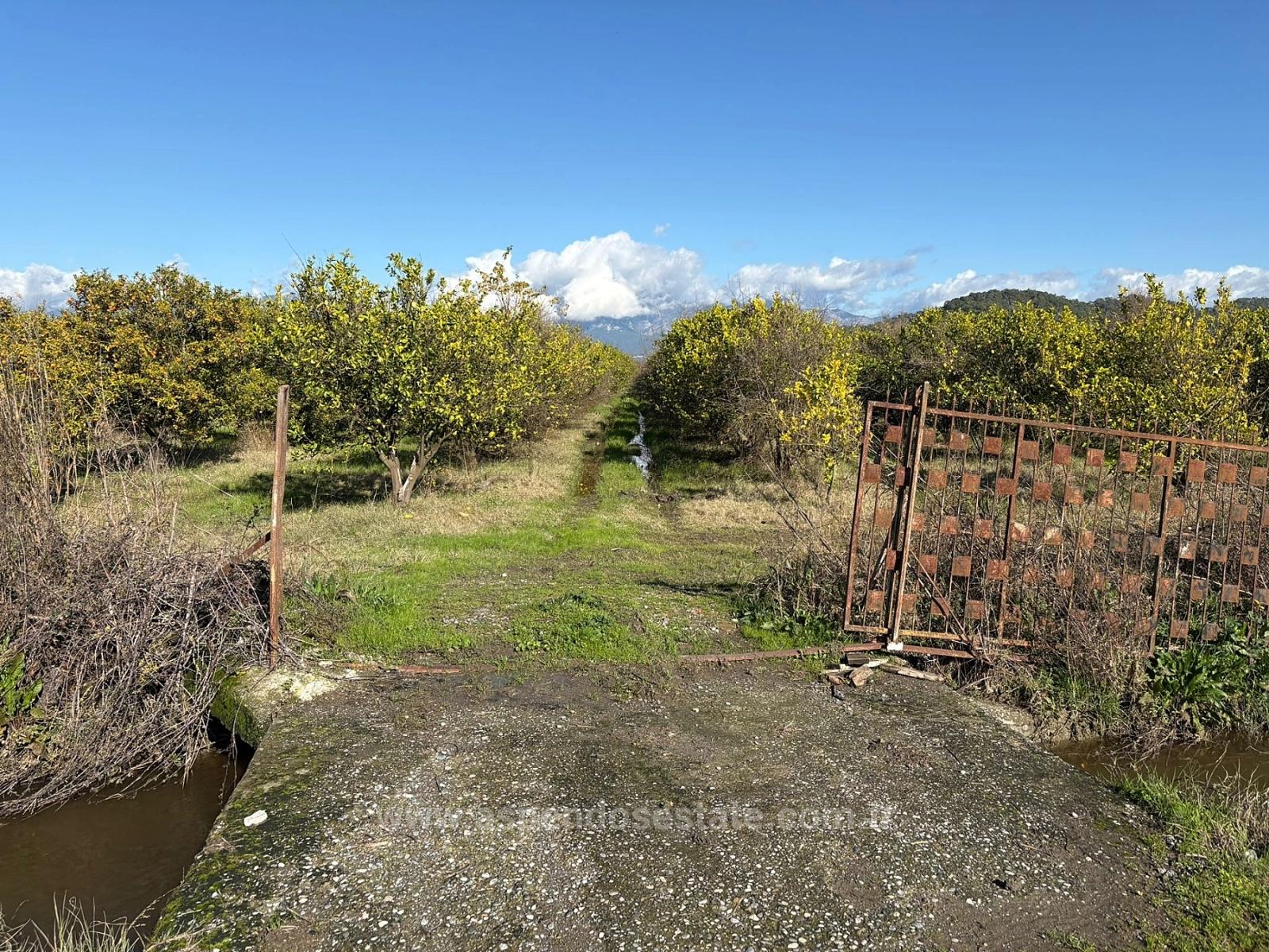 A 23,000 m2 plot of land, suitable for vineyards and orchards, is for sale in Ortaca Tepearası, right next to the asphalt road. There are no problems with road access, water, electricity, or telephone. The garden has its own private electricity subscription. The land contains pomegranate and lemon trees, and some orange and mandarin trees. The land is 5 km from Dalyan, 15 km from Iztuzu Beach, 10 km from Ortaca, and 25 km from the airport. It offers nature and forest views. Price: 45,000,000 TL