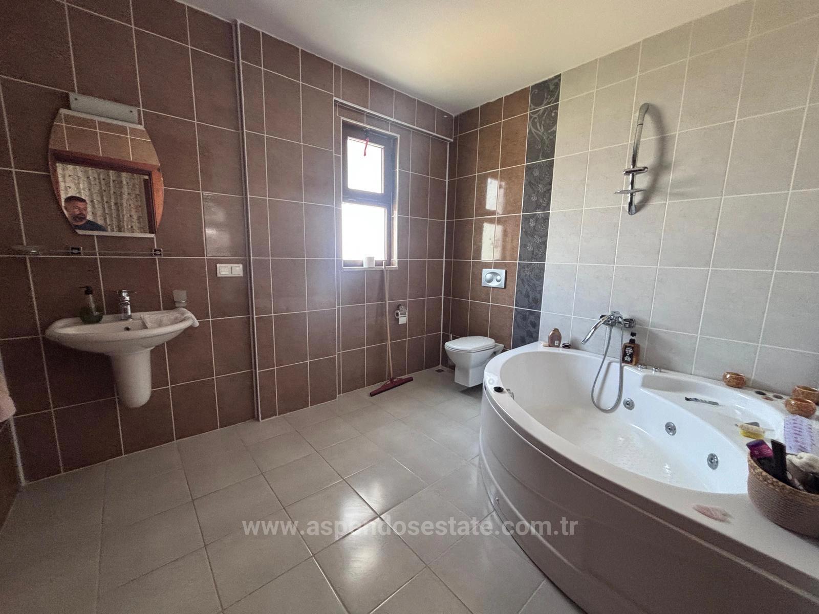 A villa with 5 bedrooms (each with an en-suite bathroom), 1 living room and an open kitchen, 5 bathrooms and a detached outdoor swimming pool is for sale in Dalyan Maraş, on a 980m2 plot. The pool is saltwater and heated. Fully furnished. The garden of the villa is landscaped with fruit trees, palm trees and oleander. The villa is in a quiet location and overlooks the rock tombs. The villa is 10km from Iztuzu Beach, 25km from the airport and within walking distance to shopping markets and the local market. The price of the villa: 895,000 GBP