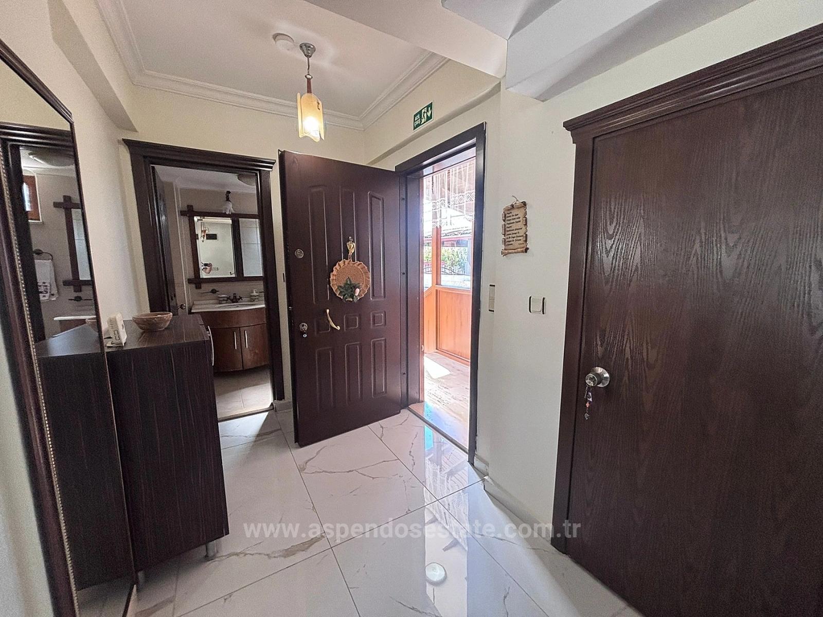 A corner villa with a 301m2 plot of land, 5 bedrooms, a large living room with open kitchen, 3 bathrooms, and an outdoor swimming pool is for sale in Dalyan. The ground floor has a living room, kitchen, and guest toilet and sink, while the upper floor has 3 bedrooms, one with an en-suite bathroom, and a shared toilet and sink. Each room is air-conditioned. The infrastructure for central heating is ready. It is fully furnished. It is within walking distance of shopping markets and the local market. The villa, which has forest and mountain views, is 10 km from Iztuzu Beach and 25 km from the airport. Price: 20,000,000 TL