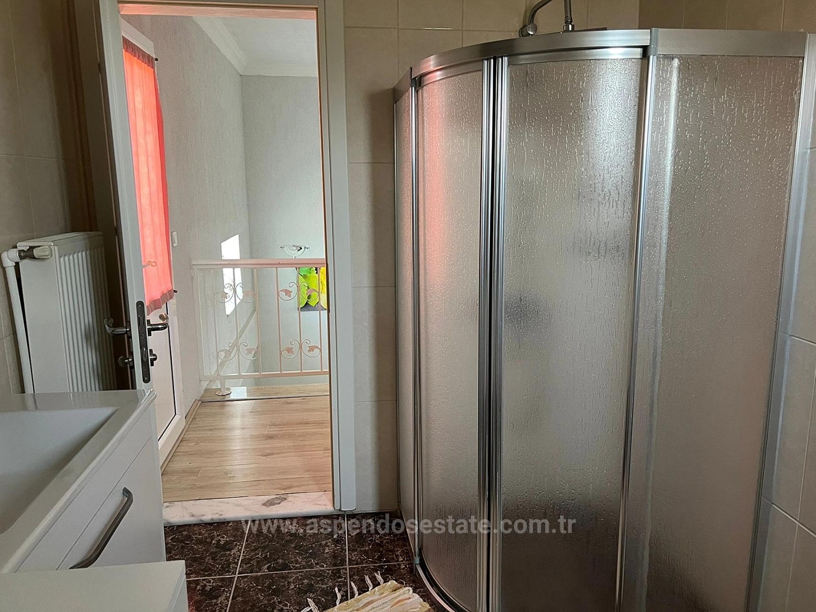 A 3+1 villa with a pool is for sale in Dalyan, on a corner plot of 600m2. The ground floor has a living room with open kitchen, sink and toilet, and the second floor has 3 bedrooms and 1 shared bathroom. One bedroom has an en-suite bathroom. Each room is air-conditioned. There is a heat pump central heating system. It is fully furnished. It has a private entrance and a storage room, sink-toilet and covered parking space in the garden. There is a children's pool.