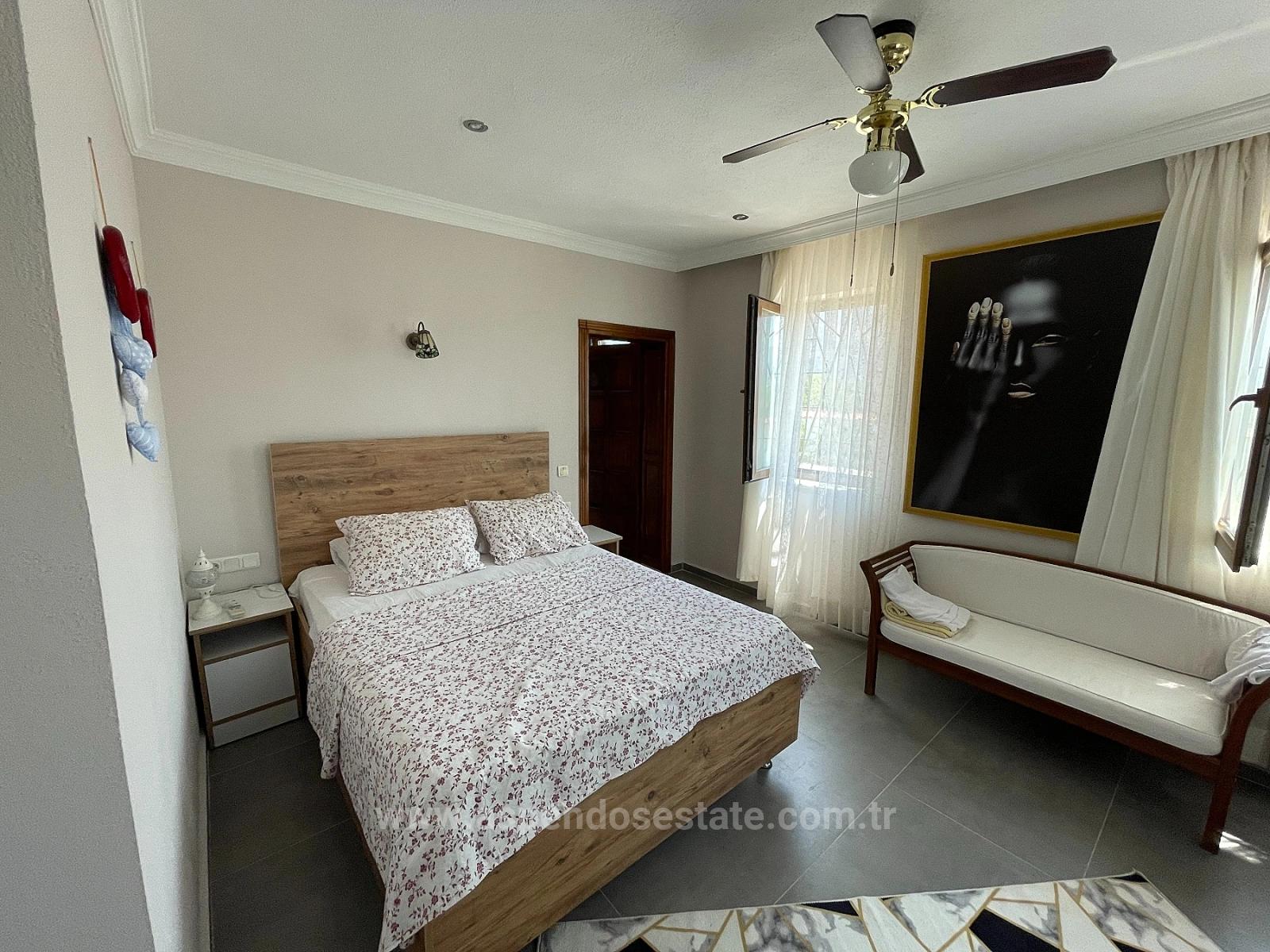 Расположенная на участке площадью 7000 м2 на дороге к пляжу Истузу в Даляне, эта вилла располагает 4 спальнями, гостиной с камином и кухней, 4 ванными комнатами, полностью меблирована, отремонтирована и оборудована кондиционерами в каждой комнате. Вся бытовая техника новая. Вилла имеет собственный открытый бассейн с системой соленой воды и искусственный пруд с рыбами перед виллой. Сад благоустроен, есть барная стойка и беседка. Вилла имеет балкон и террасу. Дополнительные расходы отсутствуют. Она находится в 5 минутах от магазинов и рынка, в 8 км от пляжа Истузу и в 25 км от аэропорта. Из виллы открывается вид на Истузу и гробницы царей. Цена: 1 100 000 GBP