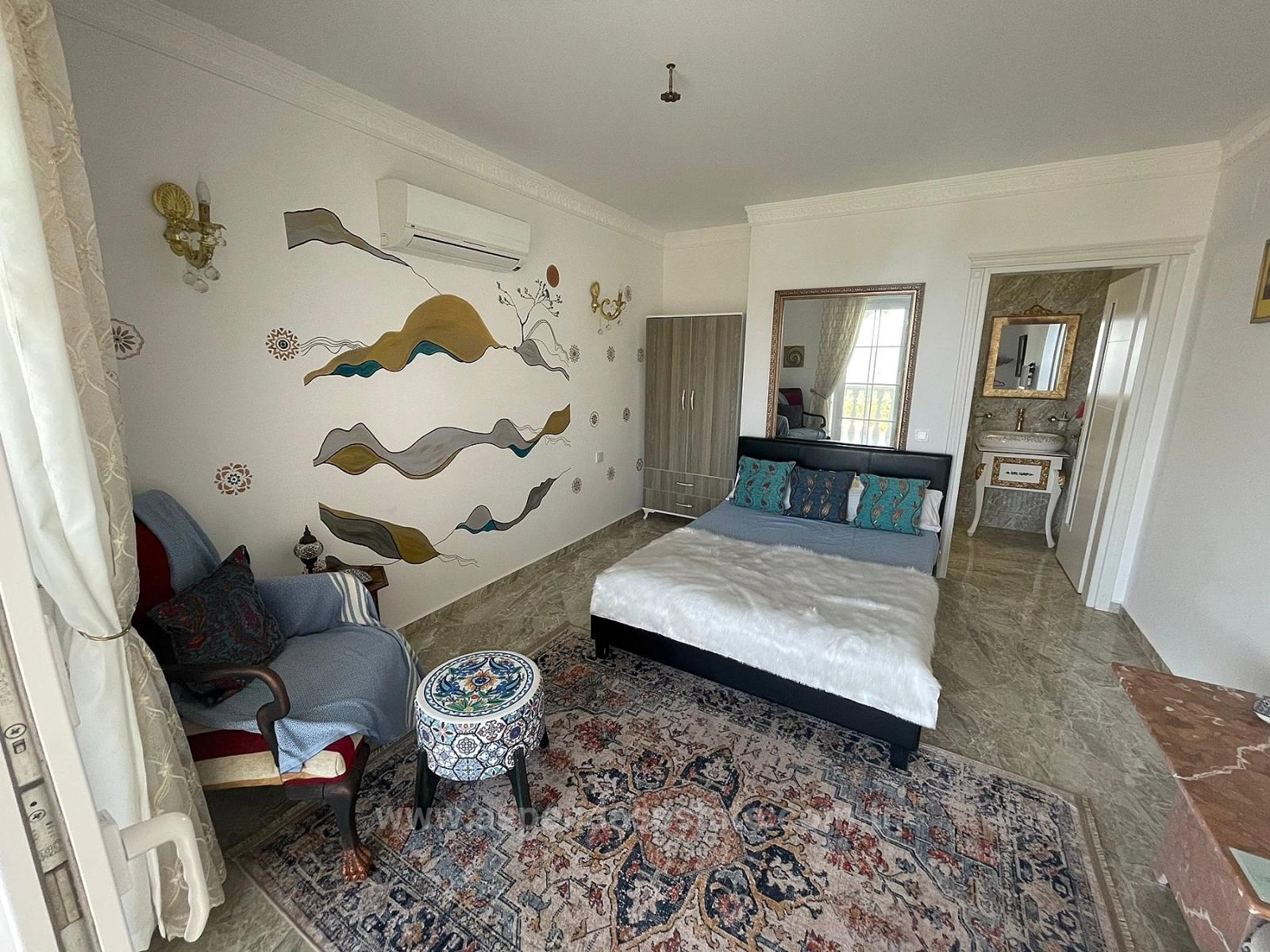Gökbel'de full deniz manzaralı 5000 m2 arsa içerisindeki VIP villa satılıktır. 7 yatak odalı olup, her odada ebeveyn banyosu vardır. 1 oda ise dubleks olup, ebeveyn banyoludur. Geniş salon ve açık mutfaklıdır. Her oda full eşyalı ve klimalıdır. Doğal görünümlü açık yüzme havuzu vardır. Villada seramik olarak mermer kullanılmıştır. Çevre düzeni ve bahçe dizaynı yapılmıştır. Binanın yapı kayıt belgesi alınmıştır. Villa dışında bir adet eski yapı kaydı vardır. Elektrik ve su mevcuttur. Mülk sahibi yabancıdır. Yıllık kira getiri yaklaşık 30-35 bin pounddur. 2-3 tonluk yedek su deposu tankı vardır. Hiçbir masrafı yoktur. Deniz, doğa ve orman manzaralıdır. İztuzu Plajı'na 5 km, Sarıgerme Plajı'na 15 km, Dalyan merkeze 10 km, havaalanına 20 km mesafesi olan villanın fiyatı: 1.650.000 GBP